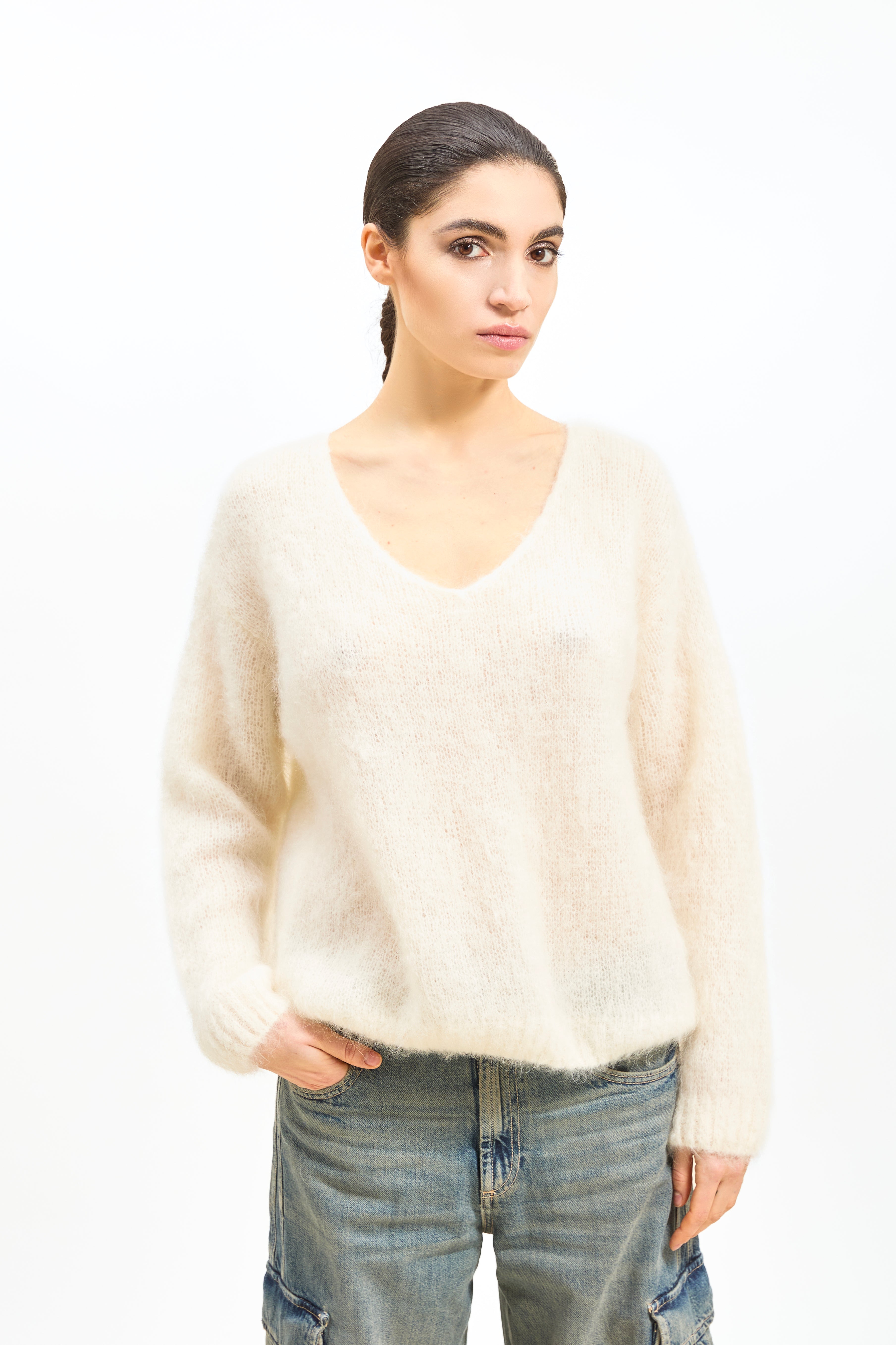 MAGLIONE BIANCO SCOLLO V - BB COUTURE