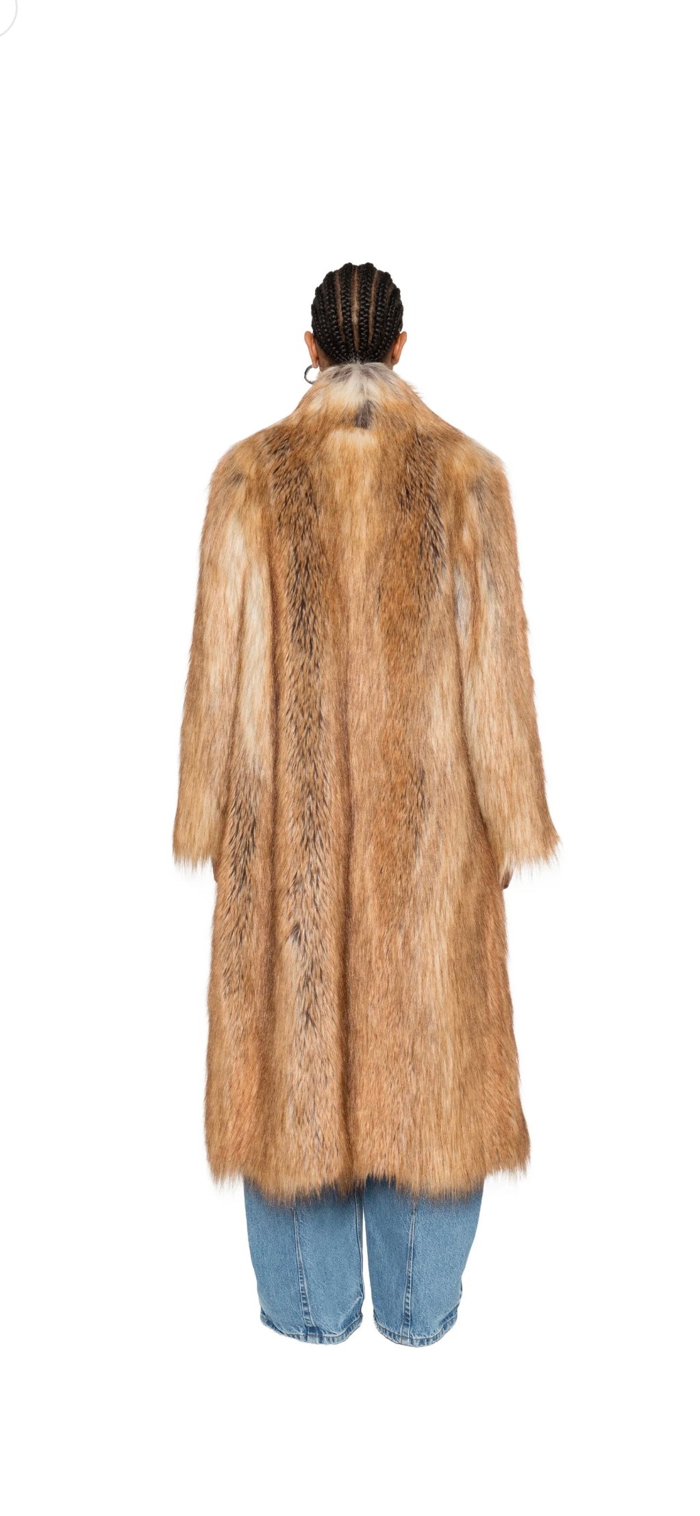 Imposing, enveloping, and iconic: this wolf-effect faux fur coat is our must-have for facing winter with character and style. A true bestseller season after season, loved for its natural, sophisticated look combined with extraordinary comfort.